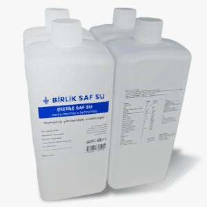 RO ve İyonik ayrıştırıcılar ile ürettiğimiz 0 ppm saf suyu, içerisinde kalan diğer küçük molekülleri kararlı hale getirmek amacıyla tekrar distilasyon işleminden geçiriryoruz. Sonra Ultraviyole sistemle el değmeden şişe içinde ve dışında kalan tüm kontaminasyonlardan da arındırıyoruz.